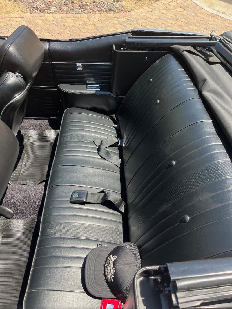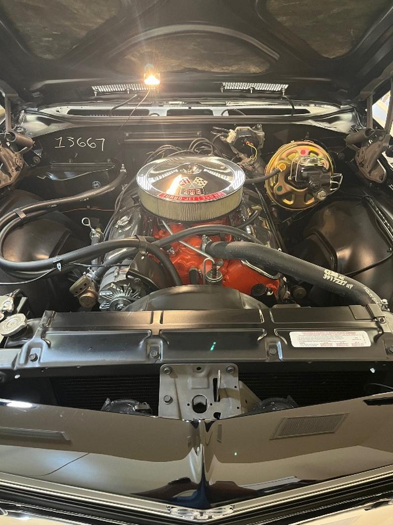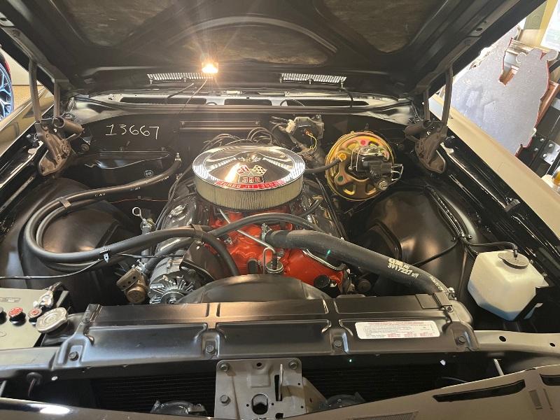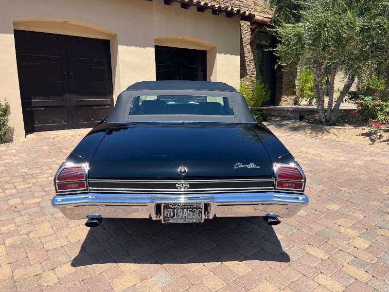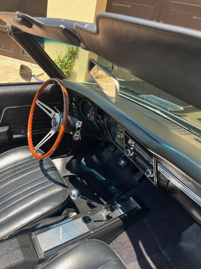 This triple-black 1969 Chevelle SS convertible underwent a rotisserie restoration and is powered by its original matching numbers 396/350hp engine mated to it's original M21 4-speed transmission and correct 12-boit posi-traction rear end. The car is finished in it's rare original color of Tuxedo Black Code 10, with a black bucket-seat interior with center console and black convertible top. It features F41 suspension, power top, power windows, power steering, power disc brakes, factory tachometer and gauges, AM/FM radio, wood steering wheel and SS wheels. It even has original T3 head-lights, correct Deico battery, correct spiral shocks, complete correct AIR smog system, and correct spare and jack assembly. it comes with the NCRS shipping data report.