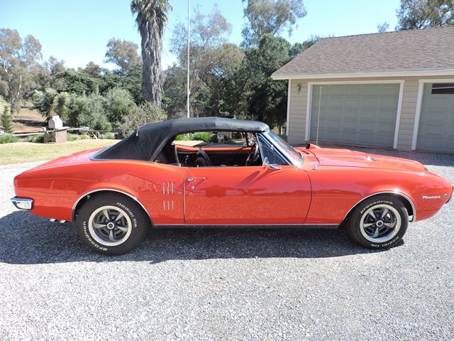 1967 Pontiac Firebird 400 Convertible - Rotisserie Restored, WS Code Ram Air, 4-Speed This first-year Firebird 400 has undergone a full rotisserie nut-and-bolt restoration and is finished to an exceptional standard. Drivetrain & Performance WS-code 400ci Ram Air V8 - 366 HP (not numbers matching) 4-speed manual transmission Power steering & power front disc brakes Vintage Air A/C system Hood tachometer & Rally gauges in console Exterior & Interior Show-quality 1967 Corvette Red paint over black convertible top Black bucket seat interior Rally wheels with beauty rings Original California black plates Restoration Notes Complete rotisserie restoration with attention to detail All systems rebuilt or replaced Turnkey condition - needs nothing This is a rare chance to own a fully restored WS-code Firebird 400 Convertible in one of the most striking color combinations.