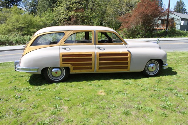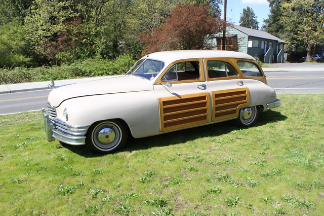 948 saw the finalization of Packard's post-war styling. This new look was highlighted by a smooth headlight to tail light treatment on the side panels with only the beltline ridge appearing to separate what could be considered the fender line. This "free-flow styling" as Packard called it, gave the new cars a striking, modern appearance. The front bumper was integrated into the grille and the well-appointed interiors featured large, comfortable seats while offering generous amounts of hood and leg room. In the 1948 brochure, Packard declared it the all-occasion beauty and comfort of a sedan, all the traditional utility of a station wagon along with new strength, streamlining, and proud distinction. This four-door wagon was only offered for three years. Its ash panels, framed with birch, were largely decorative; indeed, the only structural woodwork on the otherwise steel-bodied vehicle was the tailgate, which pioneered the two-piece gate design that would become a feature of most American wagons by the mid-1950s. Power came from Packard’s smooth-running inline-eight engine. This Woody Wagon is an extremely sought-after car that's ready for straightforward recommissioning. Just out of long-term ownership and storage, it's ready for cosmetic and mechanical refurbishment. It wears an older restoration but still shows well. The wood is in overall good condition and the tan with brown interior would benefit from a higher- level detailing. Nice and straight body and structurally sound. The engine runs well, and the mated transmission operates smoothly. This 1948 Packard Eight Station Sedan represents a rare offering from the twilight years of wood-trimmed wagon production. In total, just 3,885 examples of the Eight Station Sedan were built from 1948 through 1950, with the majority produced in 1948; few have survived to the present. Packard Woody Wagons are extremely rare and seldom come on the market. This is a great opportunity to acquire this rare and sought after model at a bargain price. An elegant and unusual woody wagon design One of only 3,885 produced, of which few survive A dream come true for the Packard collector.