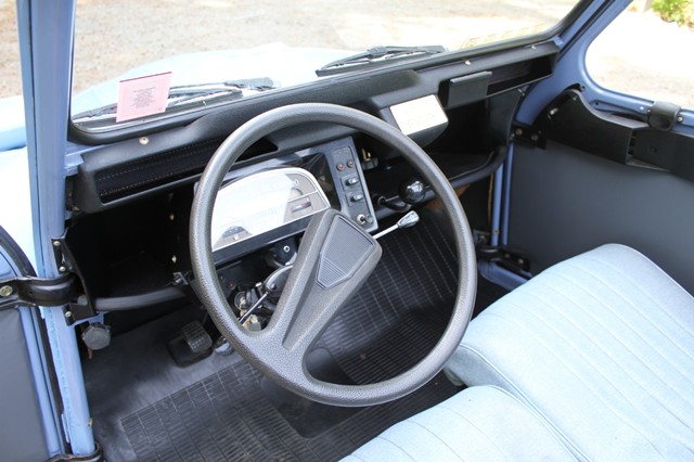 he classic Citroen... Known for its unique shape and practical features. The clean lines, minimal interior, and original styling make it a standout piece with quiet charm the world over. This Citroen 2CV/6 stands out as a very nice example. The blue exterior over blue interior maintains the simplicity these cars are known for. Both are in very good condition. Unfortunately, the hood was recently damaged and needs minor repair. Otherwise, this car starts easy and drives well. The unique shifter design changes transmission gears easily. The convertible top is also unique and is easy to manipulate. This Citroen 2CV/6 is a nice option for collectors or anyone interested in classic European styling. It's a simple, iconic example of mid-century automotive design.