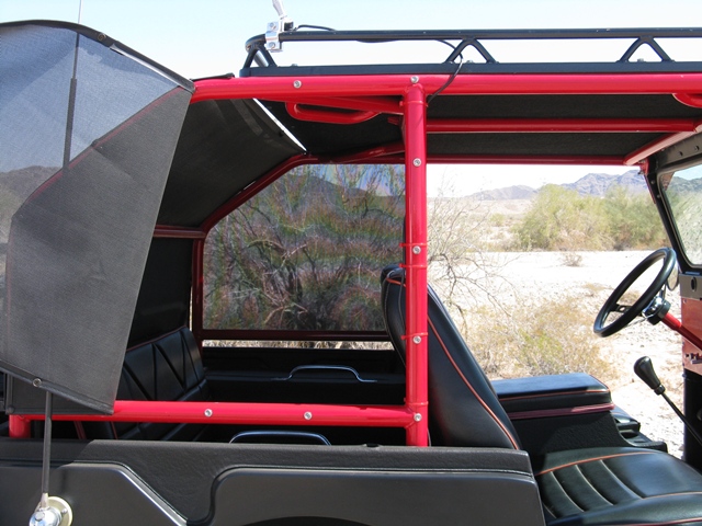CUSTOM BUILT FOR THE AVID SPORTSMAN - EQUIPPED WITH: Chevrolet V6 Engine 3 Speed Manual Transmission High and Low Speed Transfer Case Power Steering Electric Cooling Fan AutoMeter Gauges Battery Disconnect Switch Asbestos Covered Exhaust System Front Disc Brakes with Dual Master Cylinders Locking Front Hubs Hydraulic Controlled Clutch Custom Fuel Tank with Skid Plate Custom Wheels and Tires Lift Kit with Heavy Duty Suspension Steering Stabilizer and Tie Rod Shocks Rear Differential and Swaybar Shocks Chicago Winch with Remote Control Onboard Air Compressor Custom Front and Rear Bumpers Front and Rear Bimini Tops Side and Rear See-thru Removable Sun & Dust Panels Heavy Duty Aircraft Seat Belts Front and Rear Halogen Spotlights Heavy Duty Jack Removable Roof Mounted Cargo Storage Rack CB Radio with Removable Antenna Reese Quick Connect Tow Bar Removable Swing-Away Spare Tire Fuel Cans and Storage Container