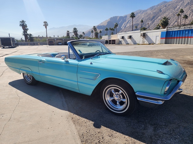 The 1965 Ford Thunderbird Convertible is a classic American car, known for its stylish design and luxurious features. It was part of the fourth generation of Thunderbirds, which ran from 1964 to 1966. ***PRESENTING a "RETRACTABLE" top T-BIRD that can cruise_ anywhere in style. She is painted in "NEPTUNE FROST TURQUOISE" resulting in a lot of "THUMBS-UP" while on the road. FEATURES: Cruise-a-matic Transmission Power Steering Power Disc Brakes Upgraded Sound System Power RETRACTABLE TOP- Mag Wheels Fresh Dual Exhaust - low restriction Factory Air-conditioning Dual Mirrors Fender Top Turn Signals ADDITIONAL: New Interior New White Top New Hydraulic Rams for Top Some key features of the 1965 model include: Body Style: The convertible model had a sleek, elongated body with a distinctive rear-end design. Engine Options: It offered several engine options, including a 390-cubic inch V8 that produced 300 horsepower Transmission: It came with a standard 3-speed automatic transmission, with a 4-speed manual as an option. Interior: The Thunderbird was known for its plush interior, with high-quality materials and a driver-focused cockpit. It also had a dashboard that featured a swing-away steering wheel for easier access and comfort. Safety and Features: It was equipped with power windows, power seats, and even air conditioning as options. The '65 Thunderbird Convertible exudes a sense of luxury and performance, making it a desirable collector's car today. Do you have a specific interest in this model?
