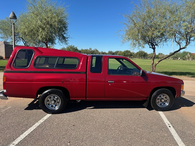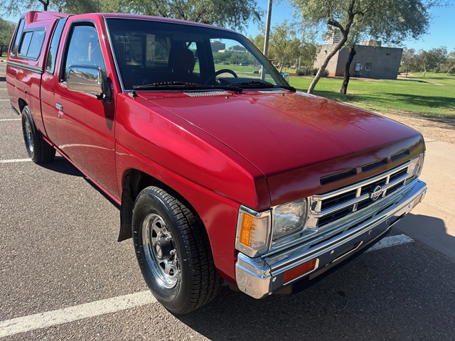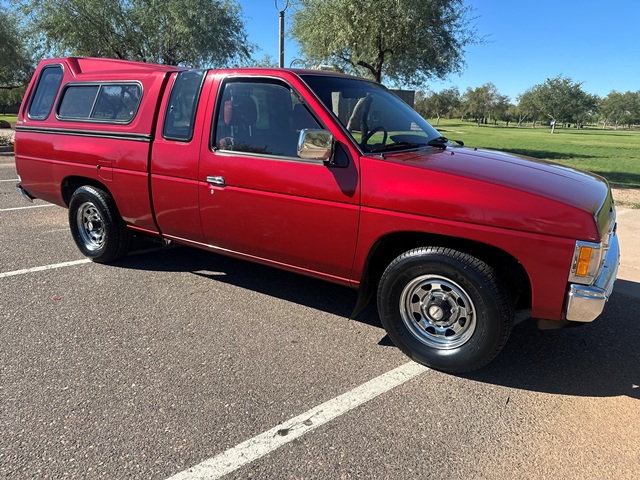 113k Miles Shown, 3.0-Liter VG30E V6, Four-Speed Automatic Transmission, Aztec Red Paint, Red Cloth Upholstery, Polished 14" Eight-Spoke Wheels, Power Steering, Front Disc Brakes, Double-Walled Bed, Bed Topper, Air Conditioning, Cruise Control, Cassette Stereo, Clean Carfax Report.