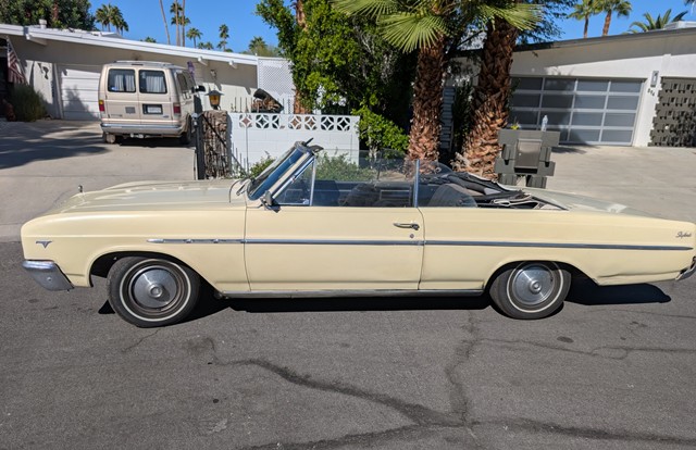 Mostly unrestored condition but maintained as needed. Has had regular tune ups and oil changes. Transmission rebuilt 10 years ago. Repainted original color 30 years ago. Local daily driver, same owner since 1987. Has appeared in several local photo shoots and The Desert Storm Veterans parade. In April 2003 2023 the car was included in 'Cruisin Through The Years' Palm Springs parade. The horn, turn signals, e brake, gas gauge and odometer do not work and power windows work sometimes.