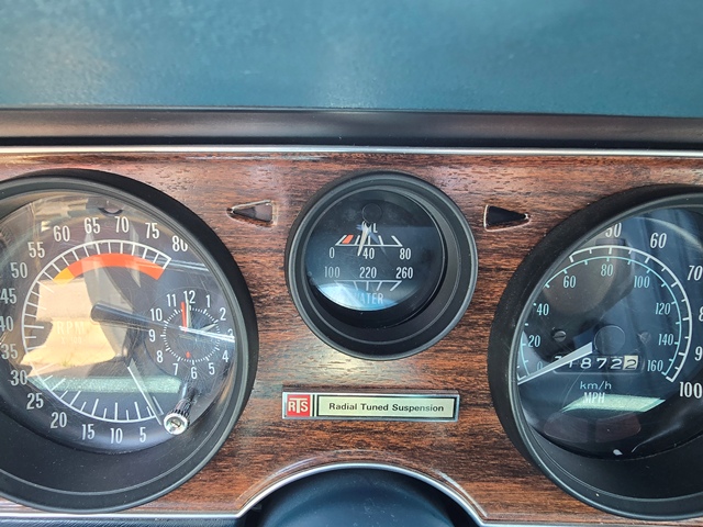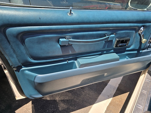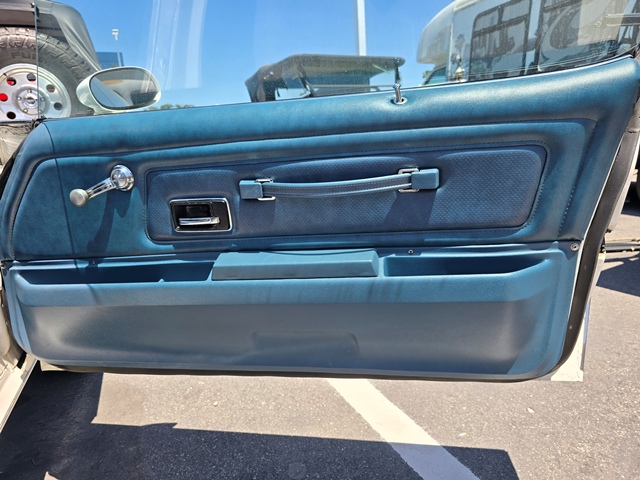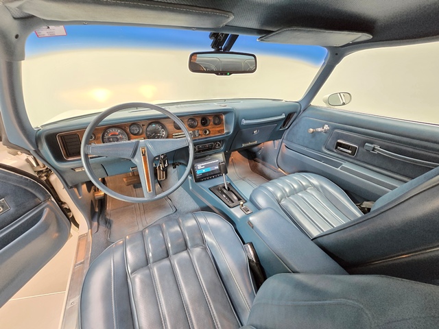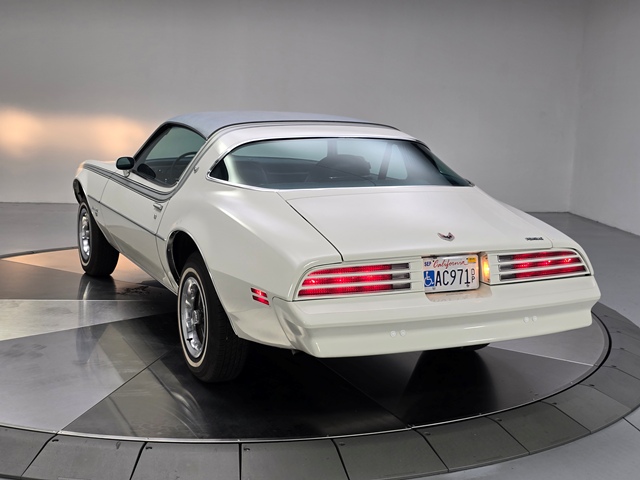 This is a 1976 Pontiac Firebird Esprit. It has the original Pontiac 350 V8 and original transmission. The paint, interior, top and stripe decals are all original. It has about 71,000 miles and I am its third owner. Galpin Auto Sports did a bunch of “girlie” custom work on it for me. It has a fancy Alpine stereo with Apple Car Play and Sirius radio, a backup camera and sensors, an onboard NOCO battery tender, auto headlights and a Compustar (Drone Mobile) alarm system with GPS tracking.