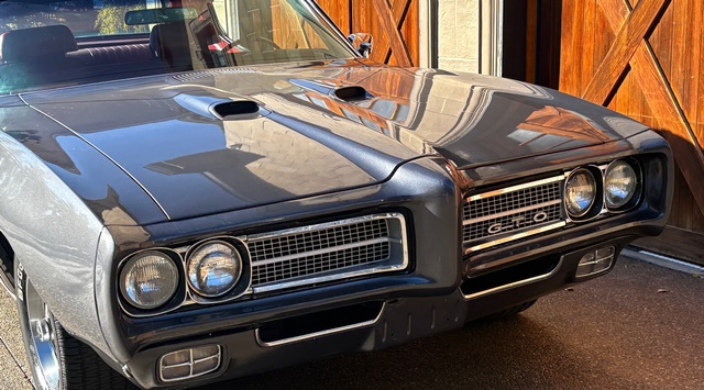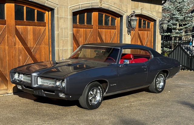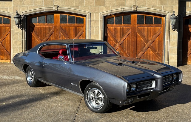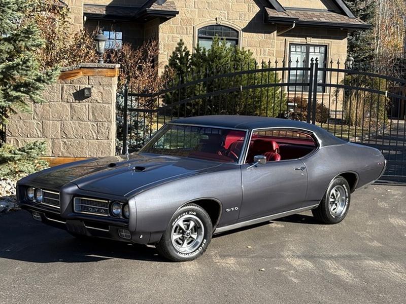 1969 Pontiac GTO Ram Air - Factory 400 4BBL V8 Ram Air - Factory 400 4BBL with just over 100,000 original miles. Equipped with the factory Turbo-Hydramatic automatic transmission, power steering, disc brakes, AM radio, and the original owner’s manual. Beautifully finished in Charcoal Gray Metallic with factory red bucket seats and console interior. Factory PMD Rally wheels wrapped in period correct BFG Radial TAs. Stunning original owner GTO since 2025. Comes With GM Of Canada Documentation. Beautifully Restored. YZ Code 400 4BBL Engine stamped on front of the block