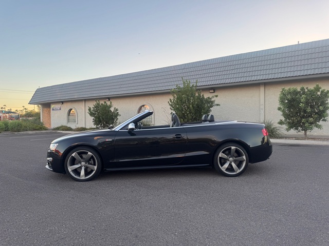 This 2014 Audi S5 prestige edition is powered by a 3.0 liter supercharged v6 engine producing 333 horsepower and backed by a 7 speed shiftable automatic transmission. Features include premium leather interior. Power heated bucket seats. Bang and olufson premium 12 speaker sound. In dash screen . Sport package . Power convertible soft top. Convenience package . Comfort package . Original MSRP of over $69000.00 and rides on a set of Audi premium alloy wheels and tires