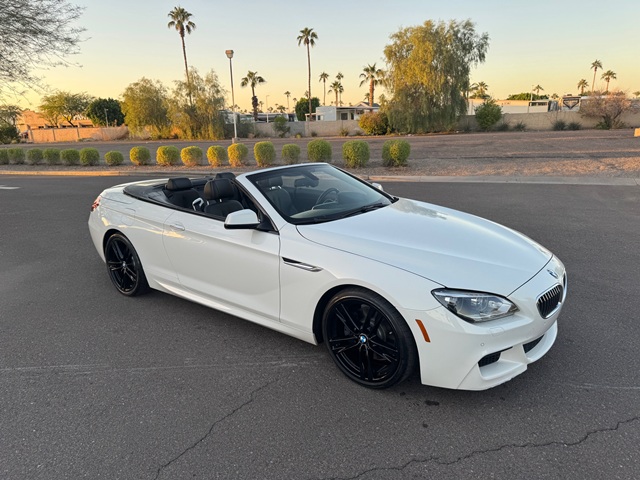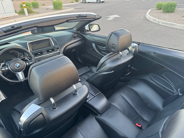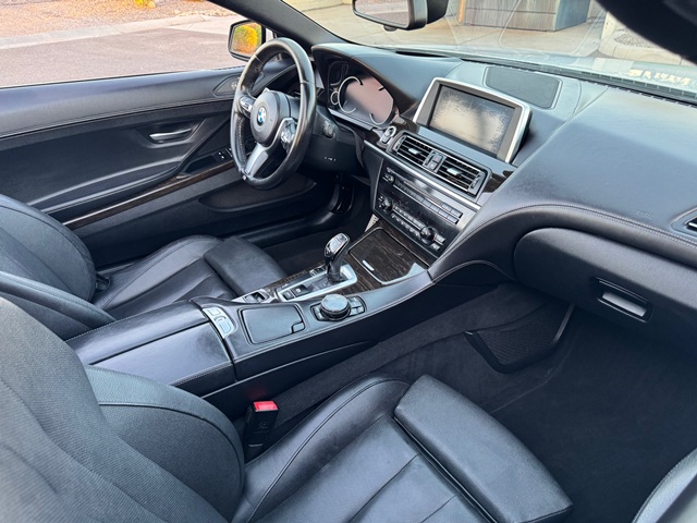 This 2015 BMW 640 M Sport is powered by a 3.0 liter turbo charged engine producing 315 horsepower and backed by a 8 speed shiftable automatic transmission. Features include premium leather interior . Power heated multi level bucket seats . Sport package . In dash screen with navigation. Premium 9 speaker audio system . Power retractable soft top . One touch power windows . Convenience package . Comfort package . Only 67400 actual miles . Original MSRP of over $90000.00 and rides on a set of BMW m sport alloy wheels and tires .