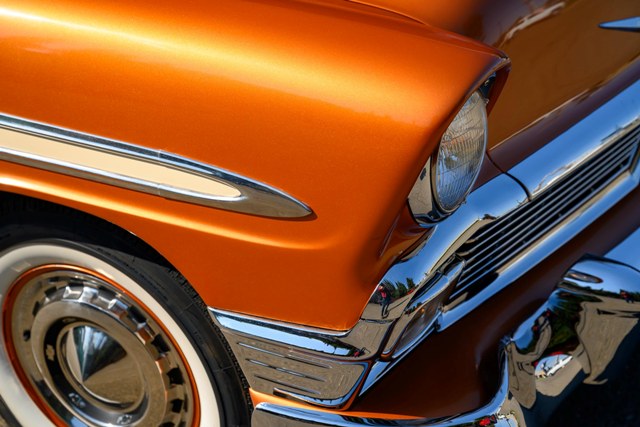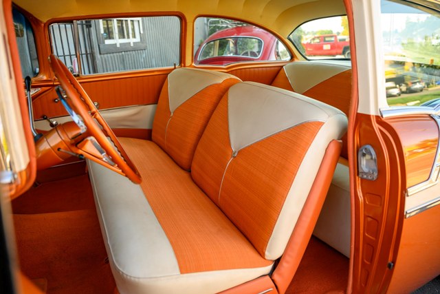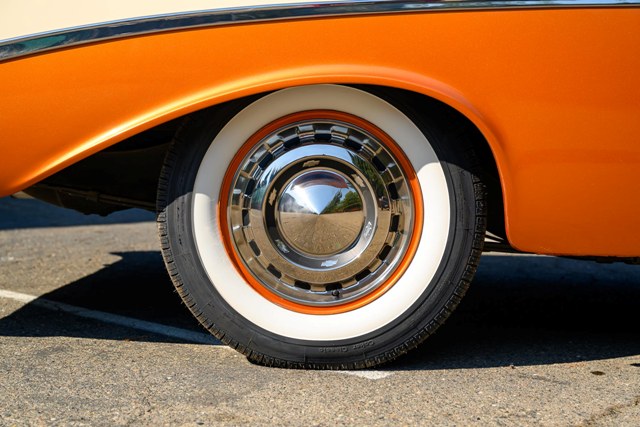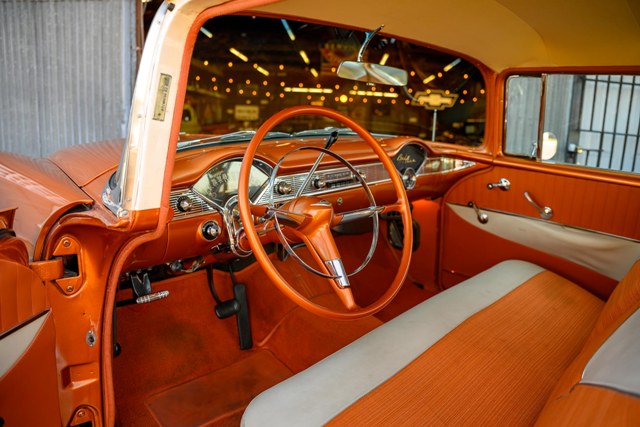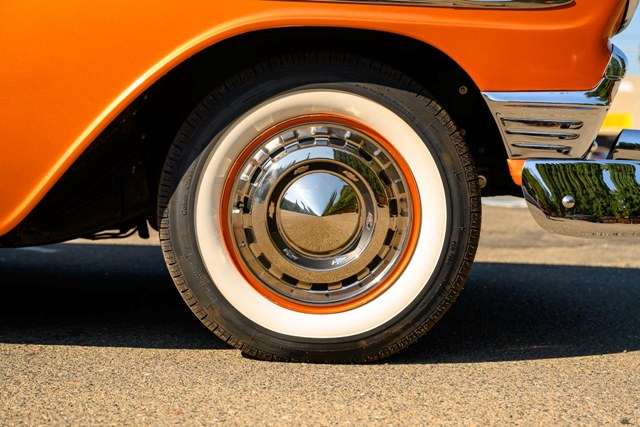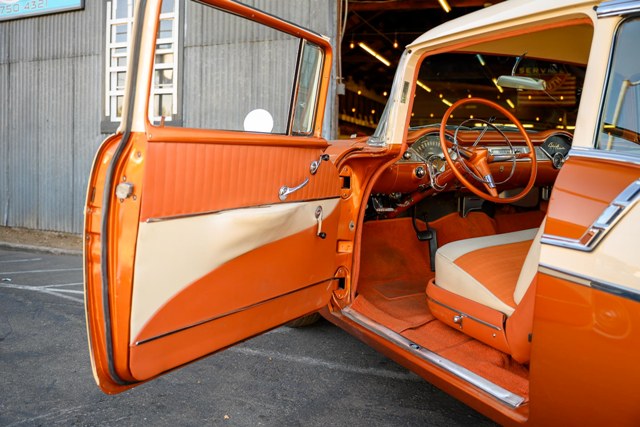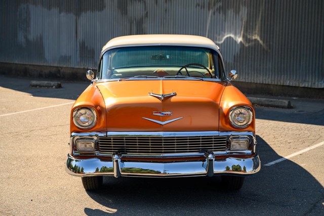 1956 Chevy Bel Air 2 Door Sedan - Frame-Off Restoration, Rare Two- Tone Factory Color Sierra Gold/Adobe Beige (Code 700). Original 265ci V8 Engine & 2 Speed Automatic Transmission. All Numbers Matching. Exactly as Trim Tag from Factory, Gorgeous Restored Interior (Code 617), Custom Floor Mats, Factory Tinted Glass, All New Bushings Body & Front End, New Fuel Tank, New Wide White Wall Radial Tires, Beautiful Classic Chevy Time Capsule!