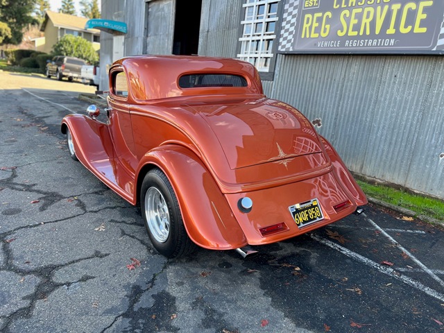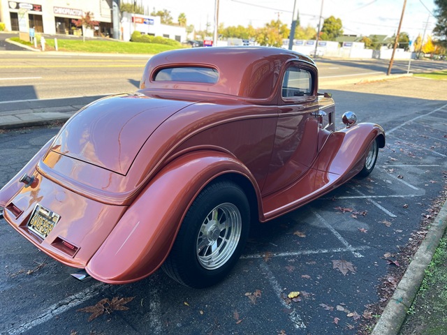 1934 Ford 3 Window Coupe - SBC 350ci Engine w/ B&M Blower 4bbl Carb, TCI TH350 Automatic Transmission, Ford 9 Inch Rear End, Four Link Setup in Rear, QA1 Coil-Over Shocks on all 4 Corners, Power Disc Brakes - Front, Heidts Independent Front Suspension, Rack and Pinion Steering, Chrome Tilt Column, Air Conditioning, Power Tinted Windows, Complete New Interior, Custom Pinstriping by DP Lineart, Dual H Pipe Exhaust, Polished Boyd's Rims w/ BF Goodrich Tires, Registered as 1934 Ford. Run With or Without Hood Sides, Nice Blaupunkt CD Stereo System Plus Much More...