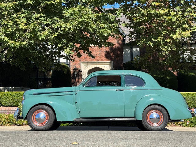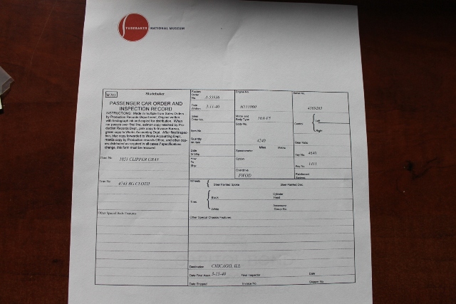 This 1940 Studebaker Commander Club Sedan is a wonderful and rare car, finished in factory colors and runs beautifully! It has a 226 Cubic inch six cylinder, with 90 horsepower, and a 3 speed transmission with factory overdrive! Runs great and freeway capable! It’s in excellent condition, and ready to enjoy now! We have the build sheet showing the car and the original dealer, and we get all the way back to the second owner, Claire Rogers, who bought it as a late model used car at Walter Schroeder Motors of La Grange, Illinois in March 1941 for $757 American dollars! We think Claire moved to California right around WWII. Myra Rogers, likely Claire’s relative, had it in Anaheim, CA up until the 1960’s. Floyd Swan of Anaheim then owned until 1978, Ed Reynolds of Studebaker International fame from ’78 to ’84, then Thomas Griffith of Northern California until 1986, and from ’86 onward the most recent former owner from Southern California. It spent most of it’s life in Southern California, with all of the rust-free goodness you would expect from living here so long. The Club Sedan is an unusual and attractive body style, and the Commander was the higher specification car with a bigger engine and more deluxe features than the Champion of the same year. Excellent chrome! The orange wheels match the Studebaker color plates, and they really pop up visually against the conservative grey-green paint. The dashboard is spectacular! as is the steering wheel which has been re-cast in the marble look steering wheel plastic! They did a great job on this! Excellent restored door panels & window surrounds excellent original headliner The seats are original – in great shape for original, with some slight wear and repair showing on the front seats, and the rear seats are original and super nice! The 226 Cubic inch Flathead 6 cylinder is factory rated at 90 Horsepower – and it is surprisingly powerful! It really steps up and goes, and with the factory overdrive can handle freeway speeds! The tires are modern radials, The brakes have just been completely redone with new master cylinder, hoses and wheel cylinders, and new brake shoes properly arced to the freshly turned brake drums and this car is ready to enjoy right now!