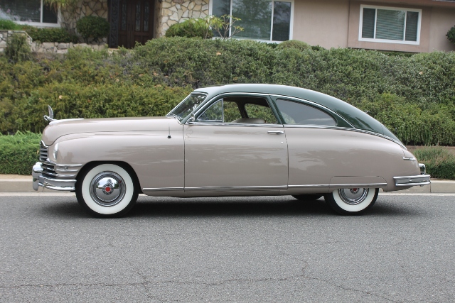 1949 Packard Deluxe 8 Fastback beautifully refinished in original colors Egyptian Sand and Sylvan Green, Straight 8 with factory overdrive, Stock & authentic, runs as it should, with 70 MPH capability. Excellent condition, Excellent chrome, beautifully restored interior, ready to enjoy now!