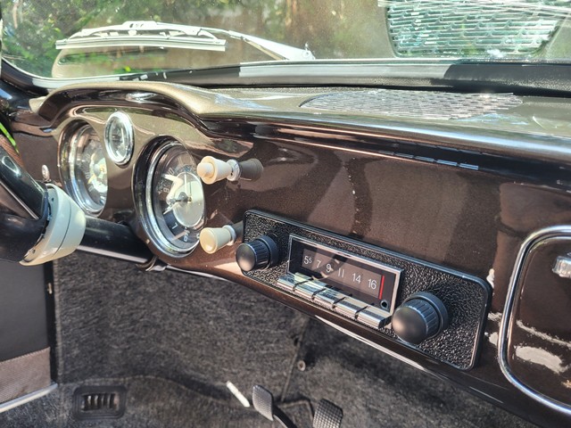New engine, clutch plate, throwout bearing, brakes, master cylinder, alignment, rust replacement with steel patch panels, floor pans, parcel shelf, bumpers, wheels and tires, windshield and rubber weather stripping, seat and seat adjusters, upholstery, carpets, headliner, radio, brake lines and battery converted to 12 volt.