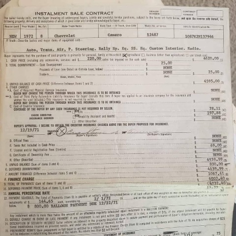 Full restoration including new high quality paint job, it was taken down to bare metal, it's a California car so there was no rust to begin with. The interior is brand new and new chrome. The engine was rebuilt with camel heads from a 1969 Camaro, machined block and heads, machine crankshaft, hang pistons and molly rings. Has original dealer invoice with Protecto plate, original engine and transmission. Car came originally White with Blue interior. Very rare for 1972 because there was a strike at the Chevrolet factory. It's an original Super Sport and Rally Sport.