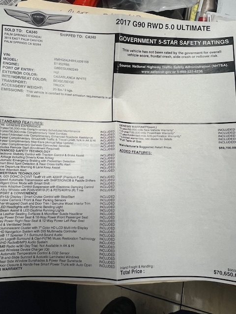 2017 Genesis fully loaded one Owner like brand new only 62,000 miles clean Carfax all service done at the dealership