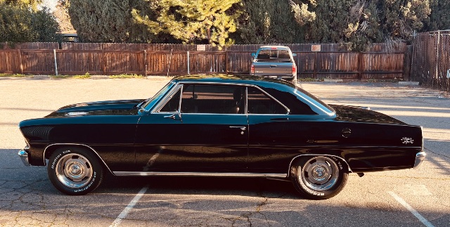 1967 Chevy Il Nova - SBC 377 Stroker (De-stroked 406)Engine, Brodix Polished Aluminum Heads, Edelbrock Super Victor High-Rise Intake Quik Fuel 750cfm Double Pumper Carb, MSD Electronic Ignition System, Moroso Custom Deep Oil Pan, Borg Warner 6 Speed Transmission, Close Ratio Hurst Shifter, New Front Disc Brakes, New Ball Joints and Bushings, New Front Shocks, New Monroe Adjustable Rear Air Shocks, Custom H Pipe Exhaust w/ Flowmasters Frame Connectors and Traction Bars, 12 Bolt Posi-Traction Rear End, Dakota Digital Dash Gauges, Procar Custom Bucket Seats & 15" Rally Wheels w/ New BFG Radial T/As