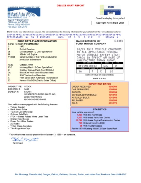 One of 96 examples equipped with the Twister Special package, offered only in the Kansas City sales district. - Powered by a 351ci Cleveland V8 - Three-speed automatic transmission - Limited-slip differential - Refinished in Grabber Orange with black Mach 1 and Twister Special graphics - Black interior with high-back front bucket seats - Shaker hood scoop - Front and rear spoilers - Center console - Retro-look digital stereo - Dual exhaust system - Power-assisted drum brakes - 14 inch Magnum 500 wheels - Purchased by current owner in 2020