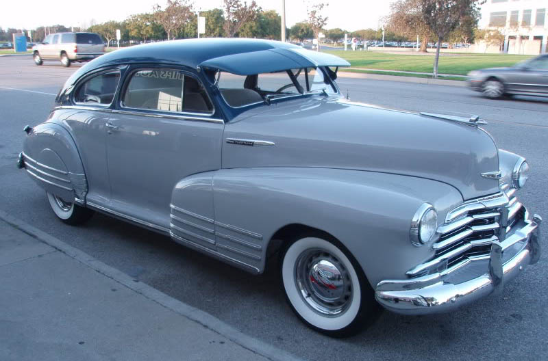 1948 Chevrolet fleetline , complete restoration, fulton visor, factory skirts, rebuilt engine, 2 stage paint factory original color, Hampton coach interior, wood grain dash and window frames, new radial 2 ½ whitewall tires, new caps and rings, new chrome, polish stainless, no rust, very nice car, engine run like sewing machine!