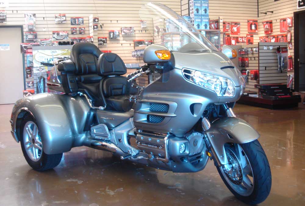 2003 Honda Goldwing CSC Trike...Newly constructed California Sidecar Trike. Complete 9/4/09. Converted bike is a 2003 GL1800 Gold Wing with only 32,970 miles. Color code is NH469 Silver. This is a great opportunity to own a brand new CSC Trike conversion on a low mileage 2003 Gold Wing. This Trike was built in house at Wingstuff.com in Southern California. CSC conversion includes Single Tone Color Match, Aux. Fuel Tank (3.4 gallons), Chrome Wheel Trim Kit, Light Bar - Color Matched, Trailer Hitch Kit, Trunk Carpet Kit / Cargo Net, Vinyl Stonegard Fender Kit (4pc), Power Trak 1800 - 4.5. Goldwing is customized with some great accessories. They include Beverage Butler Drink Cups, Driver Backrest, Hondaline Rear Spoiler, Luggage Rack, Factory CB and Antenna, LED lighted Trunk Mouldings, Turndown Exhaust Extensions, Kuryakyn License Frame, Tulsa Tall Windshield, Lower Fog Lights.