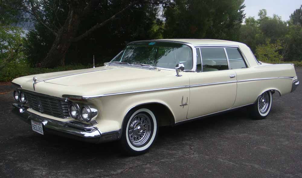 1963 Chrysler Imperial 2-door Custom coupe, one of 749 produced. Power steering, power windows, power brakes, air conditioning. Mechanically sound, with less than 2,000 miles on all of the following: Rebuilt original 413 V-8 engine, Edelbrock 4-barrel carbeuretor, correct reproduction wire wheels and five correct 1.6 inch P235-75R15 white wall tires (including spare in trunk), dual exhaust system with resonators (for quiet ride), along with additional work and many additional parts for which I have receipts, including parts and labor needed to rebuild the front end for a smooth, excellent ride. The following are also totally operational and working: Pushbutton "Torque-Flite" automatic transmission (vertical pod of buttons on left side of the dashboard, including slider control to put car in PARK) and heater and air condtioning systems (vertical pod of buttons on right side of the dashboard with slider control to adjust temperature and set fan speed), original tube radio, power antenna, wipers and washers, automatic emergency brake release (emergency brake automatically releases upon pressing any button which puts the car in gear, either forward or reverse), all lights inside and out, turn signals, etc.. She's a west coast car since birth, well-cared-for and garage-kept for many years, and still mostly original and ready to go just about anywhere! You won't want to miss this one!...