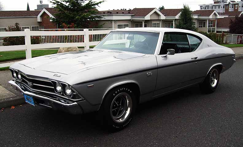 1969 Chevelle SS396... Recent ground-up restoration on this beautiful Chevelle Super Sport. Correct 396-325 HP engine, Muncie 4 speed transmission, 12 bolt positraction rearend, Rare factory air conditioning, Power disc brakes, Power steering, Tic-toc-tachometer, Factory gauge package, Tilt steering column, AM-FM cassette radio, Bucket seats with center console, All new black upholstery, SS rally wheels with Goodyear polyglas tires, Outstanding chrome, stainless trim, glass, etc., Highly detailed undercarriage and engine bay, Arrow-straight with silver base/clear exterior finish.