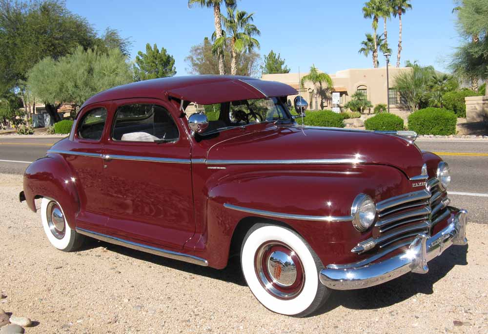 Repainted in great looking maroon color, re chromed bumpers & trim, orginal wood grain dash, optional Sun visor, dual spot lights, heater. dual exhaust and new good year wide white tires.