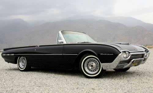 Classic two owner 1961 Thunderbird convertible! Restyled again for 1961, the all new body featured a pointed nose, modest fins above the taillights, and quad headlamps recessed in oblong housings. The interior featured a dash that curved at it's outboard ends to blend in with the door panels, and the first ever "Swing away" steering column. Powered by a 390 cubic inch V8 with a 3 speed "Cruise-o-matic" transmission and a 4 barrel carburetor. Air conditioning, power windows & door locks, power top, electric Seats, full instrumentation. White soft top! The futuristic styling of the 1961 Thunderbird was years ahead it's time.