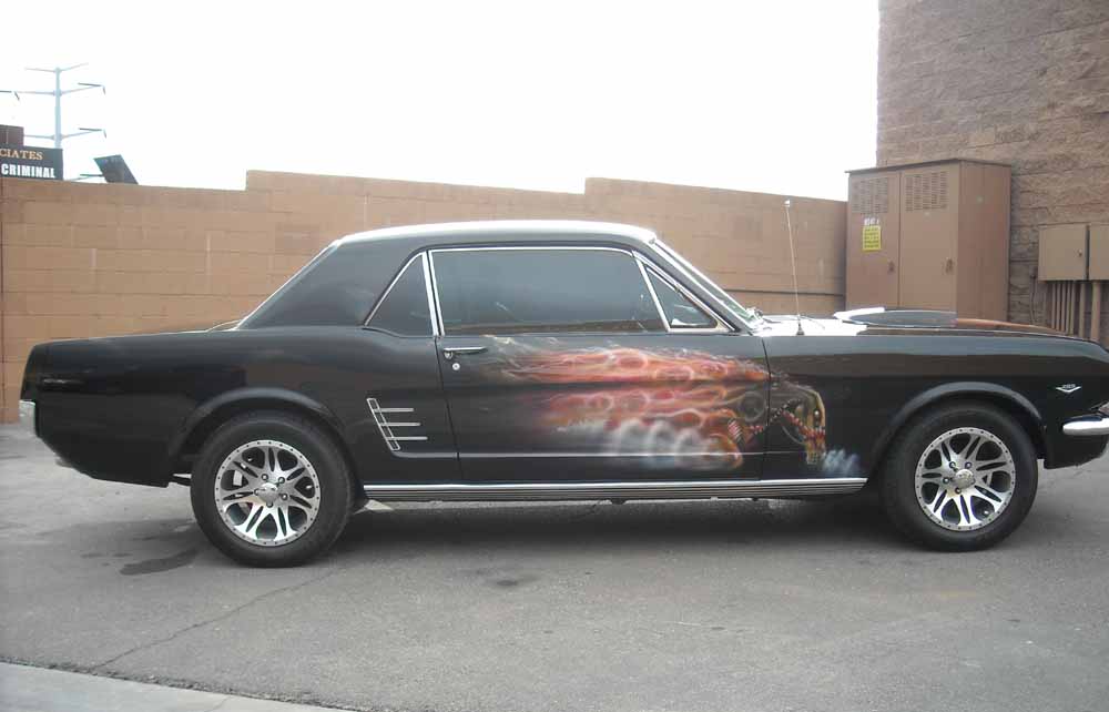 Show Winner Ghost Rider 1966 Mustang Over 30K Invested 250 miles on Restoration Factory 289 V8,Auto,Power Steering,Ford AC, Custom Upgrades such as Edelbrock Intake/Carb, Flow Tech Headers, GT Exhaust,Flow Masters, Jegs Electric Cut Outs,MSD Ignition/Coil,Accell Wires,Comp Cam,Rebuilt C4 Trans,Champion 3 Row Radiator/Electric Fan, Rally Pac,GT Driving Lights,GT Hood Scoop,Chrome 100 Amp Alt,Chrome Oil Pan,Custom AC Comp R-134,Under Carriage Bedlinner Coating for Superior Protection,Under Carriage Lighting For That Night Drive Glow,Custom High Back Bucket Seats,Original Seats Included,Custom Finished Trunk, Deep Black Exterior Paint with Custom Air Brush, Black Interior,To Much To List