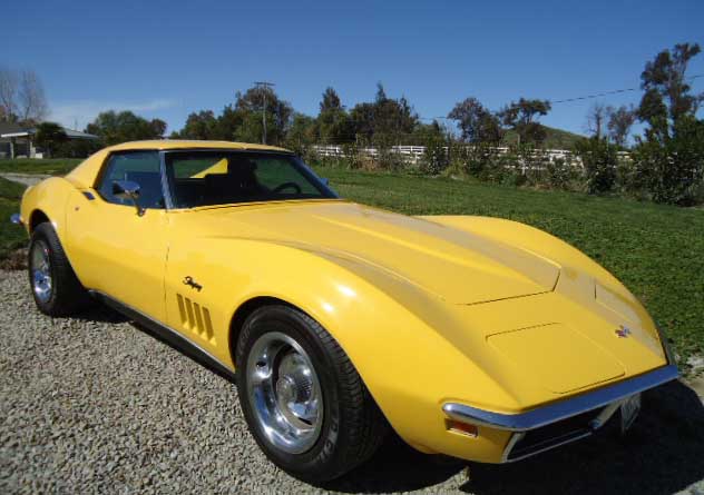 1969 Chevrolet Corvette Stingray T top Datona Yellow w/ Black interior. 350 Auto. Factory A/C, Power steering, Power brakes, Power windows.