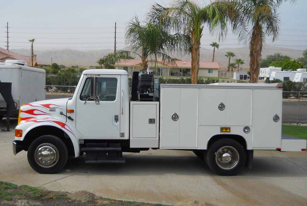 NEW ENGINE & 7 SPEED TRANSMISSION (LESS THAT 10,000 MILES) CONVERTED TO 14X2 PLATE PULL CLUTCH, NEW RADIATOR FAN HUB, INSTALLED SERVICE BODY WITH ROLL OUT AT REAR, MILER WELDER / GENERATOR, NEW AIR COMPRESSOR, VICTOR TORCHES WITH 100 FT HOSES, ALSO HAS 32 GALLON WATER TANK!