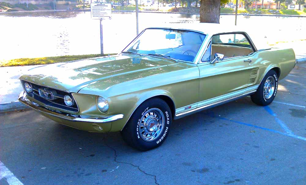 1967 Mustang GTA true 'S' Code 390 Hi- performance model, with Factory in dash cold Air Conditioning! This is an unmolested matching numbers true S code 390 big block with production numbers at only 4403 units made. Driving a big block Mustang is an experience like no other!! This Extremely rare GTA model is one of a very limited production for 1967 bringing the numbers down to only 2287 out of 356,326 built, which represents less than 1% of those built. Original survivor Parchment Deluxe Interior, complete with seat medallions, Deluxe stainless steel dash trim package including wood grain Tilt steering wheel and working clock. Stainless full length overhead and center consoles. This rust free California born car is truly THE PERFECT STORM!! One impeccable repaint in its original Lime Gold Metallic finish. Rebuilt engine and transmission, power steering and power disc brakes. They are only original once!