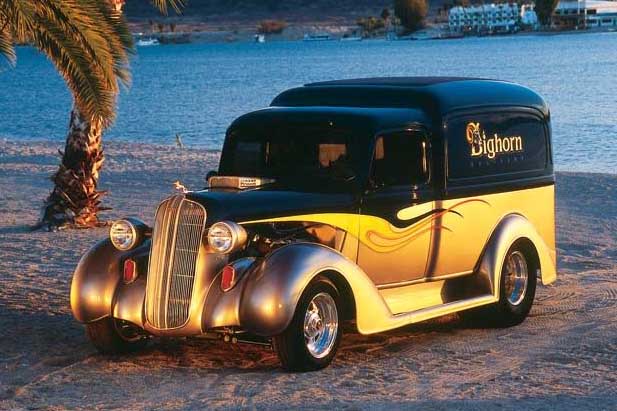 This one of a kind vehicle features a 392ci Chrysler Hemi topped with a Weiand 6-71 blower and a pair of Edelbrock Q-jet 600-cfm carburetors. Open the suicide doors to view a full custom two tone grey leather interior. The vehicle sits on a Dana 60 rearend that was narrowed to 40 inches to allow the 31x18.5-inch Mickey Thompson fatties to tuck under the rear fenders, also features 4 link suspension with a Panhard bar and coilover shocks.