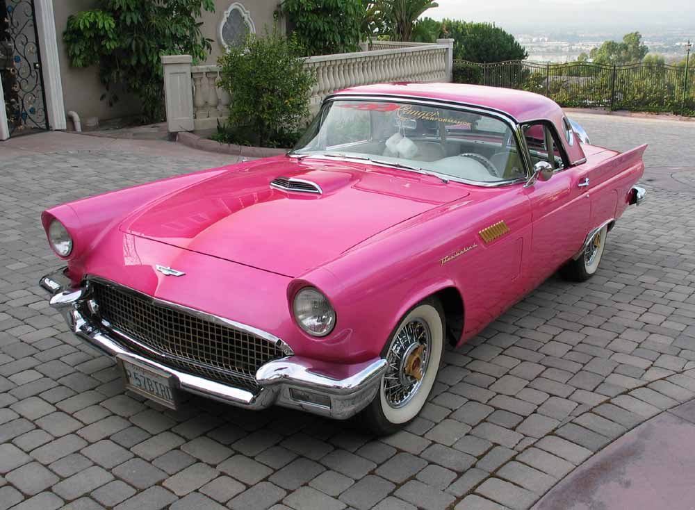 CUSTOM 1957 FORD T-BIRD This is the perfect trophy car for a truly elegant lady! One of a kind, Restoration and mechanical work by Prestige Thunderbird, Custom Work by Ranger Performance, Santini Paint Works and Stichcraft Interiors. ENGINE Ford Y block 312 cu inch, Holley 4 barrell double Pumper, Petronix electronic ignition, custom headers and exhaust system with flow master mufflers, also has electronic cut-outs. DRIVE TRAIN Transmission, Fordomatic (rebuilt), Ford 9 inch rear end. CHASSIS Front Suspension: completely rebuilt with KYB shocks, performance sway bar. Rear Suspension: KYB shocks and performance sway bar. Brake: Modified master cylinder and booster, Front disc brakes. Other: Chrome Molly roll bar (chromed) with over seat loops wind screens. INTERIOR Custom leather interior by Stichcraft Interiors (world famous custom interiors) Embroidered custom bucket seats, custom carpeting, TV/VCR and CD Changer, Budnick steering wheel, custom dashboard with turned stainless steel inserts, custom trunk and leather custom door panels and headliner. WHEELS Custom made Roadster Sport wheels with gold nibs and spinners. BODY AND PAINT Trim holes and seams welded, gas door welded and relocated. Custom fabricated Continental Kit (1957 T-Birds were not available with a Continental Kit) Paint: House of Kolor, special mixed Pearlescent Hot Pink with diamond dust, by World renowned custom painter Pete Santini , Westminster, California Original Car mileage: 94,076 Mileage since restored/customized: 1,610 This car has won numerous car show awards, Best of Show, Best Paint, Peoples Choice and many others.
