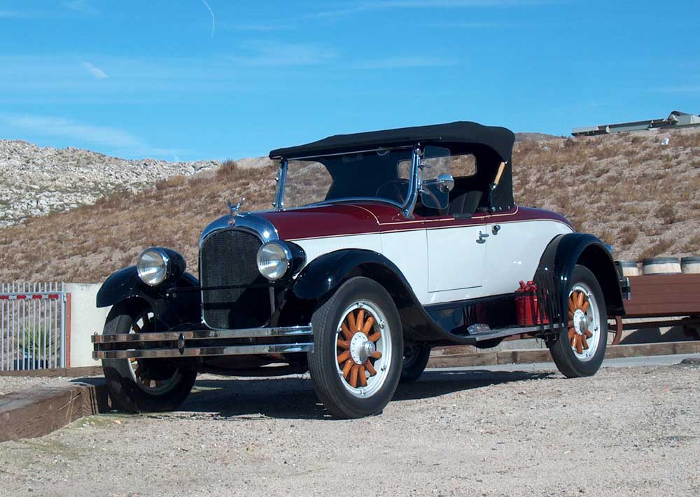 1928 CHRYSLER RUMBLE SEAT ROADSTER WITH GOLF CLUB DOOR...BODY OFF RESTORATION, HYDRAULIC BAND BRAKES, RIGHT SIDE GOLD CLUB DOOR, ORIGINAL RUNNUNG GEAR, DRIVES GREAT AT 50 MPH.
