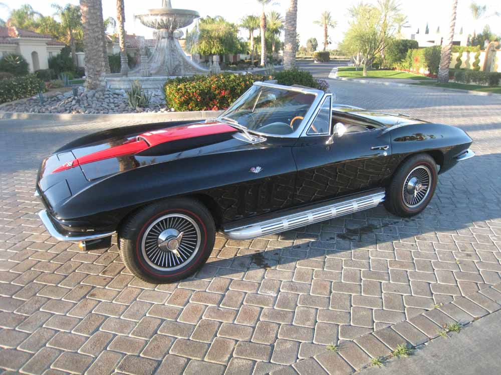 1965 Corvette Convertible, Off-frame Restoration 327/365HP Numbers Matching Solid Lifter Motor, Big Block Hood, 4-Speed Manual Transmission, Cold Air Conditioning by Vintage Air (not visible), Power Steering, Power Brakes, Rare Side Mount Exhaust System, Teakwood Steering Wheel, Cast Aluminum Knock-Off Wheels With Red Line Tires, Power antenana, New Delco battery, New front grill, AM/FM radio, New headlights, Most all factory correct components, Owners manual,Triple Black With Leather Seats, New convertible top. Looks, runs, and drives excellent. Great investment.