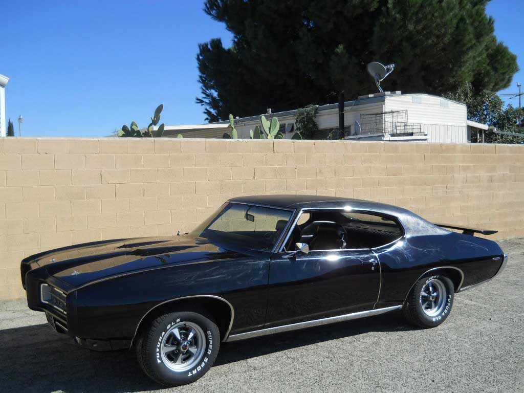 Very Nice Rust Free Original Black Plate California 4 Speed Console GTO... Original Triple Black to believed 69000 original miles. Numbers Matching Car With Numbers Matching 400 WT Motor with Muncie M20 Four Speed and Safe-T-Track with 3.55 gears Gorgeous Starlight Black with Black Cordova Top and a Immaculate Black interior, even the dash has no cracks. Comes further with Power Steering, Hide Away lights, Rally 2 Wheels, 1970 Judge upgrade rear spoiler, New Dual Flow Master Exhaust, 4 brand new Futura Super Sports, Original AM Radio with A.M. Old School Eight Track, Bucket Seats and Console. Has still all 4 original T 3 head lights and a never used original Red Line Spare Tire and Wheel. Very Nicely Detailed Engine Bay.