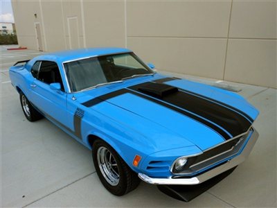 Complete nut & bolt restoration. Original Grabber Blue color, 62,000 mile original California, matching numbers Boss "G" code shaker. Original Ford production build sheet and Deluxe Marti Report. matching numbers 302 completely rebuilt with only 5 break in miles. Sold new in Los Angeles.