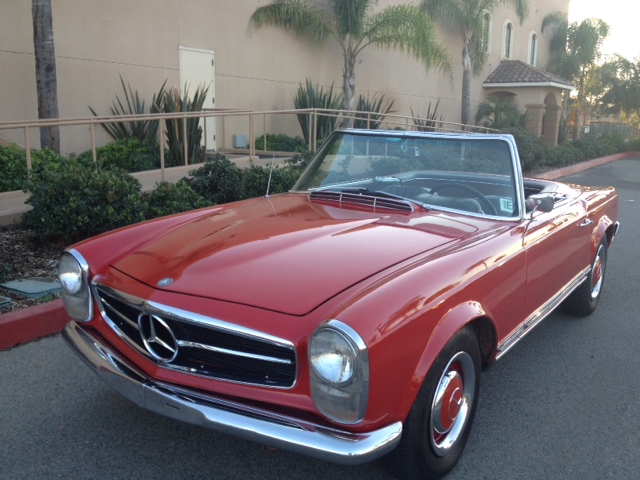 1966 Mercedes Benz 230 SL two tops featured in beautiful signal red, black interior, original Becker radio. Runs and dries very nice.