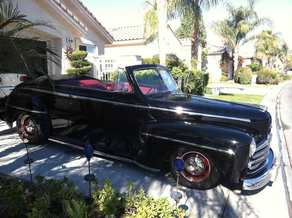 1948 Ford Custom Deluxe Factory Convertible Original 1948 Ford sheet metal, Factory Power Convertible, 350 Chevy/350AT, IFS with air bags, 9” rear end, custom built 350 with Edelbrock intake/Carb, headers. Power Steering, Power Brakes, Air Conditioning, Power windows, Tilt, Cruise, AM/FM/Cassette/CB. Same owner for past 30 years, garaged here in Palm Desert, built by John Ray Hot Rods, of El Cajon, CA.