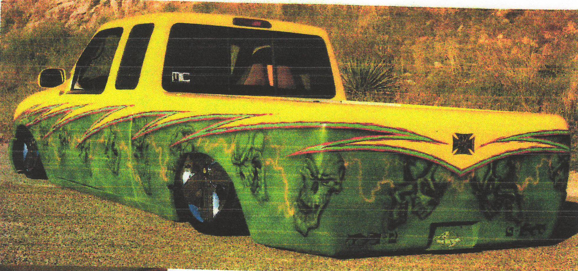 THIS VEHICLE IS OWNED BY PROFESSIONAL SKATEBOARDER AUSTEN SEAHOLM, HE WON IT IN A CONTEST.THIS TRUCK WAS FEATURED IN MINI TRUCKIN MAGAZINE. THE VEHICLE HAS ONLY 2,500 MILES ON IT, THE BODY WAS DROPPED 3 1/2 INCHES AND IS IS RAISED AND LOWERED BY 4 HYDRAULIC CYLINDERS POWERED BY 4 BATTERIES AND TWO PUMPS TUCKED IN THE BED. THE BODY HAS BEEN SHAVES AND TAILGATE MOLDED FOR THE EXQUISITE TWO TONE PAINT JOB WITH AIR BRUSHED ART WORK. CUSTOM EMBROIDERY AND VINYL TRIM COMPLETE THE MATCHING INTERIOR INCLUDING THE HEADLINER.