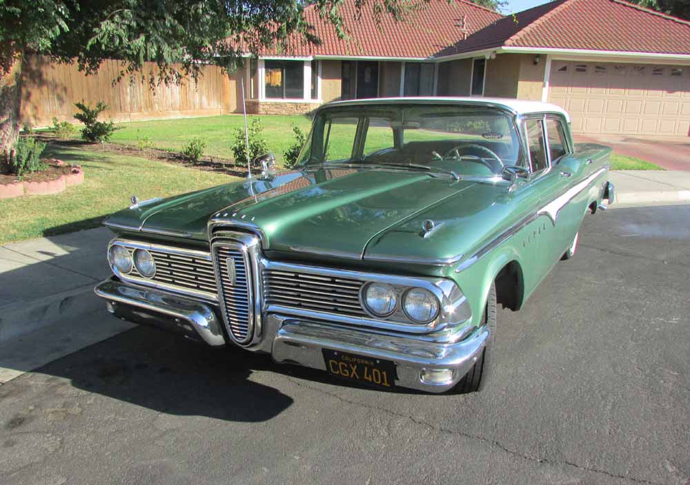 Ground up restoration completed in 2013 includes new interior, new chrome, and powder coating throughout. Innumerable new mechanical parts such as all new front suspension, all brake components, resealed gas tank with new float, new four barrel carburetor, water and fuel pumps, etc. Brand new shocks and tires. The car has the rare factory power steering option. The Edsel is a rare classic as it was made for 3 years, only from 1958 to 1960.