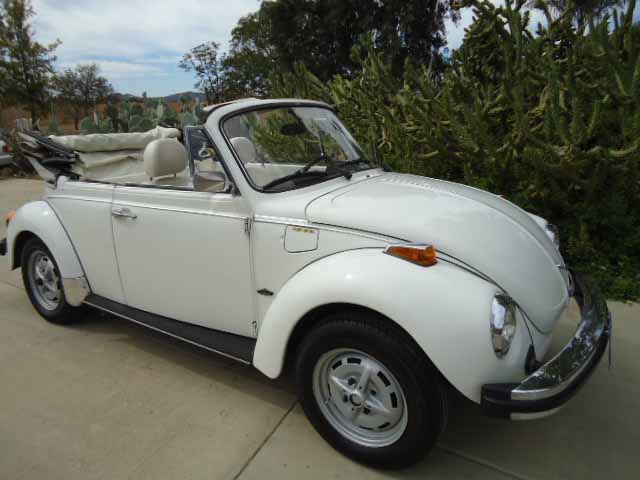 1979 Volkswagen Beetle Conv. 1 owner California car, Featured in desirable triple white, All original, always garaged, low miles. The car comes with original factory owner's manual and stacks of maintenance records, convertible boot cover and has even the original Grundig radio. This little VW is a joy to drive!
