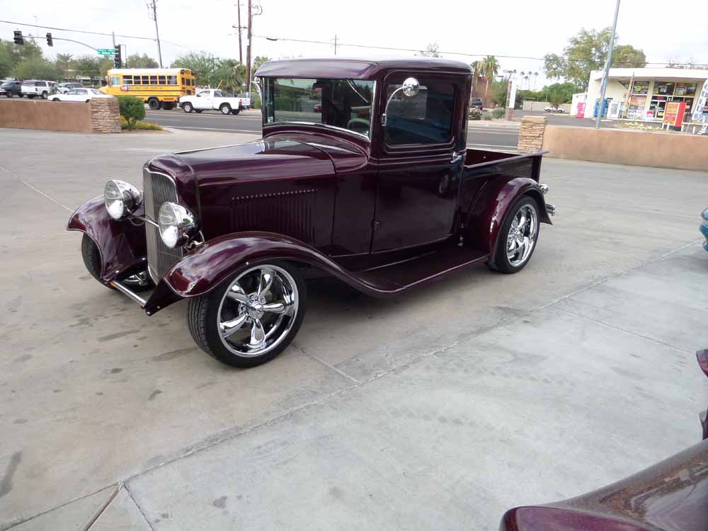 STEEL TRUCK, CANDY APPLE BURGUNDY PAINT, RACK & PINION STEERING, BUILT 350 ENGINE WITH 350 TURBO TRANS, TILT WHEEL, STEREO AND 18 & 20 INCH CUSTOM WHEELS. OAK SHOW BED, HOUSE OF COLOR CANDY PAINT, INCREDIBLE FIT & FINISH. OLD SCHOOL COOL!