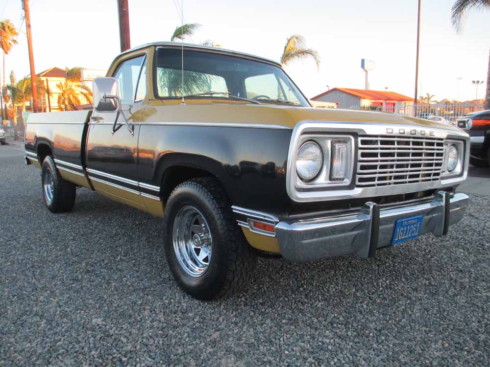 1977 Dodge pickup Original powertrain, paint, interior, & "pink slip". This is a ONE owner 74,000 mile 318 V8 automatic transmission, long bed, two tone Dodge Adventure pickup with factory A/C. Road ready with smog certificate and selling with Original Pink Slip.