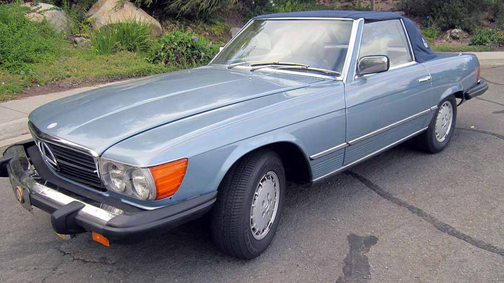 This great SL was purchased new in California. It has spent its entire life in California. This is a one family owner car. This is an original, non-restored, all numbers matching 450SL. The speedometer shows 77,800 and we believe it to be true. It has always been professionally maintained. It has the powerful 4.5 liter fuel injected, V8 engine coupled with a 3-speed automatic transmission. It has power steering, power brakes, power locks and factory a/c, which blows ice cold. It has absolutely no rust. The body panels are all in original, factory-fresh shape. All the inner areas, including the door, trunk and hood jambs are in excellent condition with no rust. This is a totally rust free car from top to bottom. It has a nice original interior. The original carpets are in very good condition. The blue canvas soft top is a brand new Robbins top that has just been professionally installed. The car has a new exhaust system, new shocks, and a new battery. The chrome and aluminum trim are also in nice condition. The trunk is also in great shape with the original carpet. It still has the original Becker radio. The engine compartment is extremely clean as well as the under-carriage. Mechanically the car is in great condition. The Goodyear tires have lots of tread left. Everything works as it should. It runs strong and shifts like a new car. It drives straight and tight with no shimmies or vibrations. This is truly an excellent example of a well maintained 450SL. It can be driven with confidence.