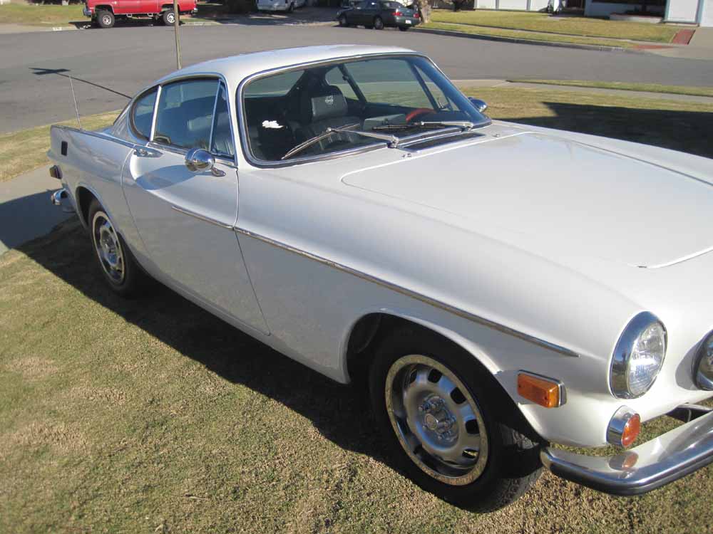 This 1971 P1800E coupe has been restored in glistening White exterior paint refinishing and all new black reproduction Volvo upholstery. The 4 cylinder B20E Bosch fuel injected engine has been rebuilt to factory specs to perform well with it’s 130 HP rated race born power plant. A complete new clutch assembly couples the 4 spd stick with overdrive transmission to the factory posi traction rear axle. Equipped with factory 4 wheel disc brakes wearing new brakes and caliper.