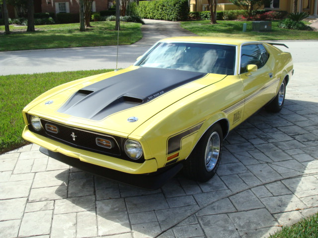 1971 Ford Mustang Mach 1. Original number matching M code engine with factory Ram Air, 4 speed manual transmission. 23,000 actual miles so states the title. Fully documented by Deluxe Marti report, Desirable Grabber Yellow exterior paint. Full rotisserie restoration and the undeside is just as nice as the top side.