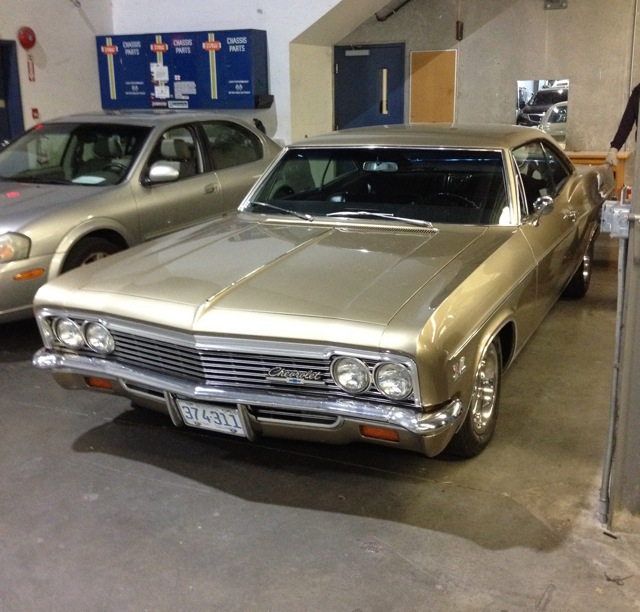 1966 CHEVROLET IMPALA 396 BIG BLOCK/TURBO JET. FACTORY TILT STEERING, FACTORY ORIGINAL A/C, BLOWING "CRISPY COLD". A CALIFORNIA CAR SOLD NEW... A FULL GM HISTORY AND BUILD SHEET, 3 INCH FLOWMASTER EXHAUST COMPLETE. ORIGINAL CARPETS, INTERIOR AND ORIGINAL MATCHING NUMBERS ENGINE AND TRANSMISSION WITH 62,200 ORIGINAL MILES.
