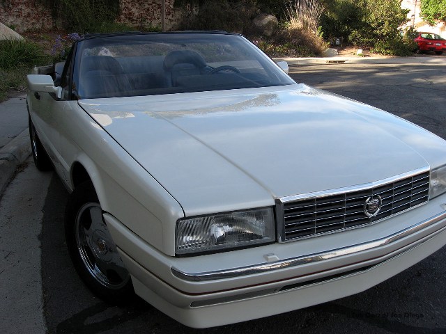 This Pearl White Allante, with the Charcoal Interior is absolutely perfect in every way. This rust free California car, with a perfect CarFax, was purchased from a retired executive right here in Southern California. It has 108,600 pampered miles on it. It has very attractive Chrome Cadillac wheels. It also has the rare and very desirable analog instrumentation. Mechanically this car is 100%. Every single thing works perfect and the Air Conditioning blows very cold. There are no door dings and the paint is perfect on this car. I have thoroughly inspected, waxed, and cleaned this car to be in like new condition. The belts and hoses and fluids have all been changed since the first of the year. Future enthusiasts know that this is the type of car to own. This is one really nice car! These cars, with their highly efficient, small aluminum V-8 engine, get about 18 mpg around town and 25 mpg on the highway. These cars run great on regular gasoline!