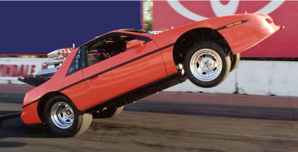 Not street legal and sold on a bill of sale only...1984 Pontiac Fiero Exhibition Wheelstander • Powered by big block Chevy • Tunnel ram intake manifold • Rock crawler carburetor • 9" Ford rear end • 400 turbo automatic transmission with V drive • 10" converter • Jegs 10 point roll cage • 2 x 3 subframe • Water cooled • Lexan window in floor *** This car burns premium gas. It does not need to be towed back to the pits. It can be driven back. This car is easy to maintain and does not cost much to operate, It is one of a kind. Draws a crowd wherever it goes. Just stand on the brake, put in first gear, bring up to 3500 rpm, let off the brake, and punch the gas. The front end comes right up.!!!